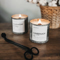 These wood-wick, triple-scented, 100% soy wax candles are hand poured in Spokane, WA, using fragrance oils infused with essential oils, 100% American-grown soy wax, & untreated cedar wood wicks.