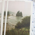 These postcards are inspired by the linen postcards of the 1930s-50s. It features original photography of Rialto Beach.