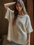 Meet your new favorite layer: The Acorn Lane Knit Top — a soft, 100% cotton knit that feels like golden hour in sweater form. With its rounded neckline, relaxed short sleeves, and dreamy sand hue, it’s perfect for those in-between days when the air turns crisp but the sun still lingers. Think cozy cottage walks, hot cider in hand, and leaves crunching underfoot.