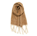 This brushed fleece scarf is like a hug you can wear. Material: 100% Acrylic Weight: 10.5 ounces size: 15.7" W x 72.8"L Tassel 6"