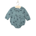 This long sleeve shortie romper is the ultimate transition piece. In 100% combed cotton jersey and forest print, it's the ideal style for warm weather fall days, while also looking cute layered over fuzzy tights for the colder months.