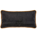 A decorative cotton pillow from displaying a fun Halloween-themed sentiment that reads "Home Sweet Haunted Home" embroidered on black velvet. Pillow features coordinating black velvet on back with caramel trim. Pillow includes a zipper to easily remove and clean machine-washable pillow cover. A fun seasonal home accent perfect for any room.
