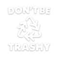 Friends don't let friends be trashy. Dishwasher safe. White vinyl with transparent background. 4” x 1.82”.