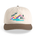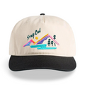 Hat specs: Mid profile - five panel cap, Light weight 100% cotton Contrast dome, plastic snapback, flat contrast peak, tonal eyelets