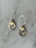 Embrace the beauty of nature with our solid silver fern earrings from Sojourn Well. Hand-illustrated by the artist, each earring features a gorgeous fern design stamped onto a teardrop piece of silver. The shape is crafted by melting solid .935 silver into a ball and hammering it flat, resulting in a unique organic shape.