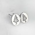 Created from solid .935 silver, these studs are built to last. The husband/wife team at Sojourn Well creates each stud by first melting a half a gram of recycled .935 silver into a ball. They then hammer the ball flat, stamp it with a perfect little pine tree, & solder on a silver post. Each pair comes on a branded jewelry card with silicone earring backs.