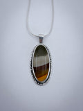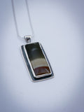Adorn yourself in this gorgeous necklace by Salt Creek Silver! Featuring a sterling silver and polychrome jasper pendant and a sterling silver chain. Each pendant also has a hand cut Douglas Fir tree on the other side.