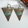 This modern design features a brass landscape design with soft-colored resin stained glass that catches the light beautifully. Handmade with high-quality components and solid brass findings, these delicate yet durable earrings are lightweight and comfortable to wear. They measure 1.25x2", making them the perfect size for everyday wear.