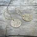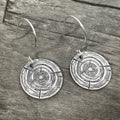 Bring the feeling of a cozy cabin fire to your outfit with these Timber Earrings by daphne Lorna! Specially etched using their unique acid free process. Show off your love of nature with these 3/4" discs hanging from sterling silver (silver) or 14k gold filled (brass) rounded earwires.
