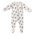 All-over pinecone print on a classic long-sleeve footed double-zip romper.