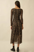 Slip into a little twilight magic with the Moonvine Midi Dress, where wild blooms meet soft shadows. This floral-print black mesh beauty weaves together panels of striped and floral lace for a look that’s both enchanting and effortless. The fitted bodice and drop waist create a graceful silhouette, while the gathered skirt moves like poetry in the breeze. Long lace sleeves and a calf-grazing hem bring just the right touch of mystery.