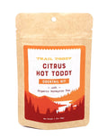 Rooibos tea is believed to be high in anti-oxidants, contains nine trace minerals including iron, potassium, magnesium, zinc, calcium and sodium, as well as many yet unknown micronutrients. The addition of star anise, cinnamon, lemon & orange peel, clove, and honey sugar give this blend its delicious Hot Toddy flavor with an extra citrus punch. To top it off, we include a slice of dehydrated orange that is simmered in Oregonian wildflower honey as a garnish. Contains no caffeine.