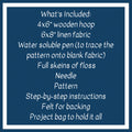 Good things take time. Just add scissors and patience! This embroidery kit has everything you need to complete the shown Hurricane Ridge embroidery kit. Are you ready for an embroidery challenge? Here it is! Every step of this project is well explained in the printed instruction booklet.