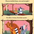 Roscoe has his campfire going and is toasting the most perfect marshmalllow. He slides it onto a graham cracker, adds a chocolate square, and sandwiches it with another graham--the most perfect s'more--when Grizzly Bear shows up. Roscoe welcomes Grizzly--and bear after bear!--to his gooey forest feast keeping hungry (and grumbly) guests content by sharing s'more after s'more. What to do but make s'more?!