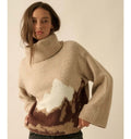 Wrap yourself in a whole mountain range. This fuzzy jacquard knit sweater is basically a postcard from your favorite trail—woven right into every stitch. With a dreamy knitted-in landscape (yep, those are actual peaks), it’s like wearing the view from your cabin window.