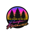 Bringing back the 80s with this Pacific Northwest sticker! Sticker depicts 3 evergreen trees at sunset with "Pacific Northwest" lettering.
